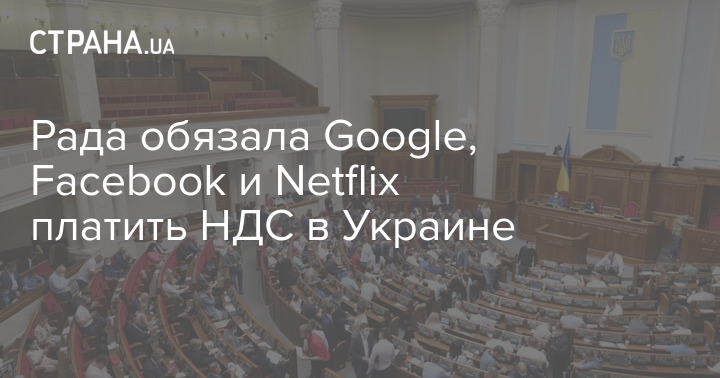 На заседании в четверг, 3 июня, Верховная Рада приняла во втором чтении законопроект №4184, предусматривающий обложение налогом на добавленную стоимость (НДС) компаний-техногигантов, которые не являются резидентами страны. К таким относятся Google, Facebook и Netflix.