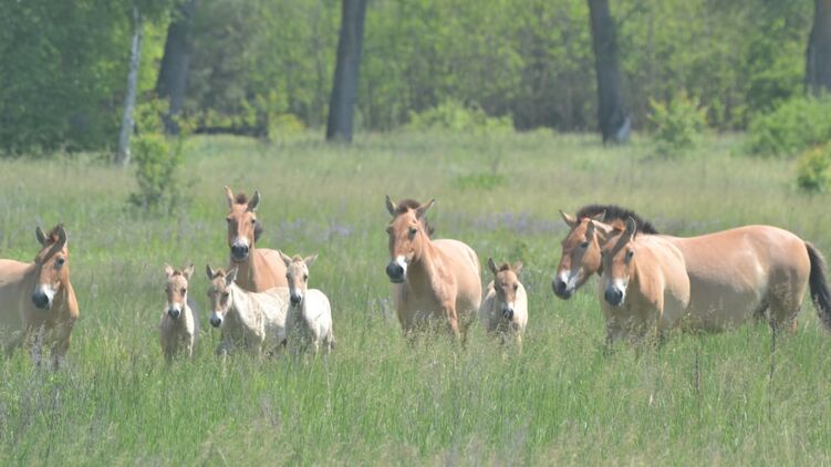 Представители Чернобыльского заповедника рассказали, что на днях табун из 12 особей заметили на северной окраине города. В нем были и жеребята этого года.