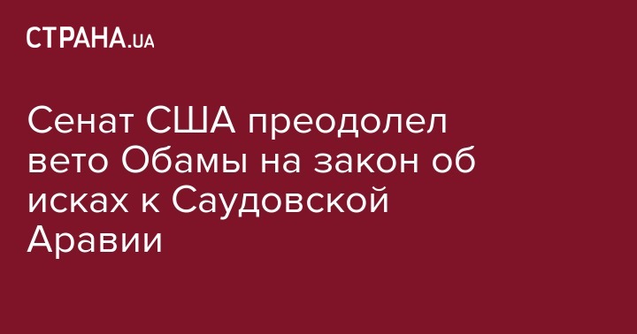 Как сообщала "Страна", Обама не разрешил американцам судиться с Саудовской Аравией из-за 11 сентября. Президент США Барак Обама наложил вето на законопроект, который позволял бы гражданам США судиться с государствами, спонсирующими международный терроризм.