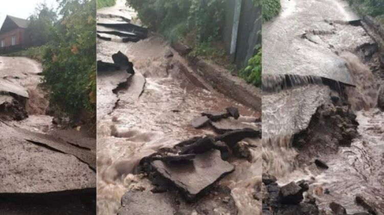 В Изюме мощнейший ливень смыл асфальт и полностью разрушил дорогу. Фото и видео