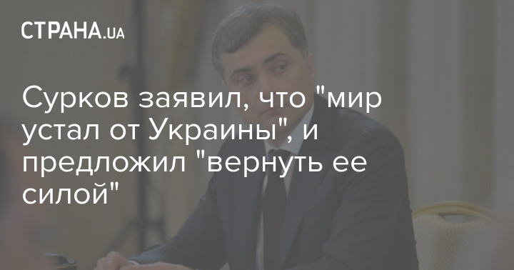 Бывший помощник президента России Владимира Путина Владислав Сурков предложил вернуть Украину силой. Он перечислил возможные меры силового воздействия, но не уточнил, какую из них стоит применить. Его слова передает Telegram-канал WarGonzo.