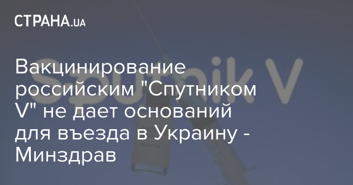 Вакцинирование российским "Спутником V" не дает оснований для въезда в Украину - Минздрав
