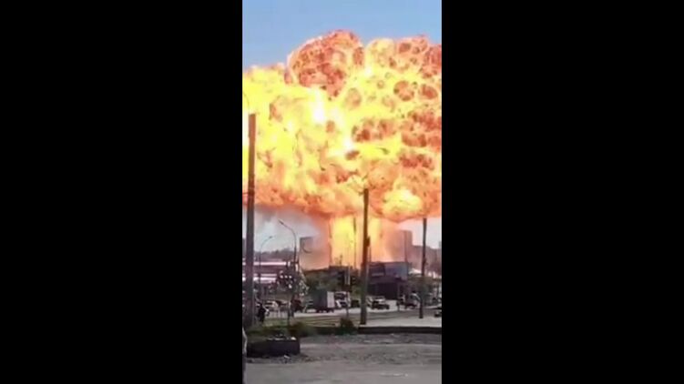 На АЗС взрываются емкости с топливом. Скриншот из видео