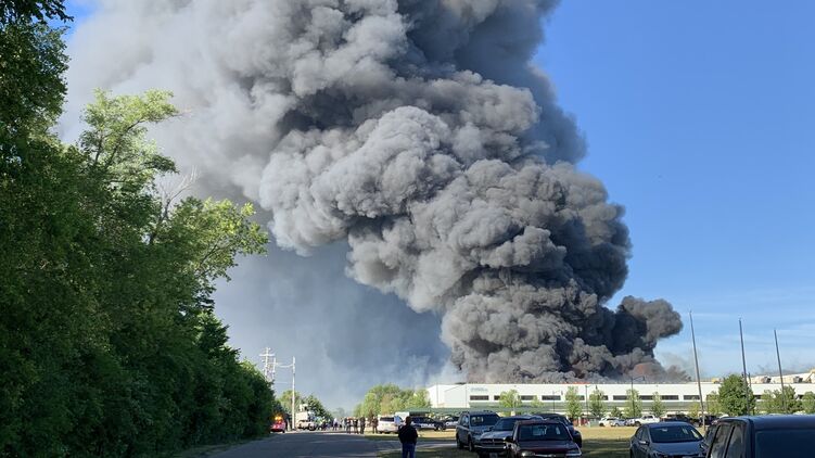 Черный дым навис над заводом. Фото: twitter.com/MaggiePolsean