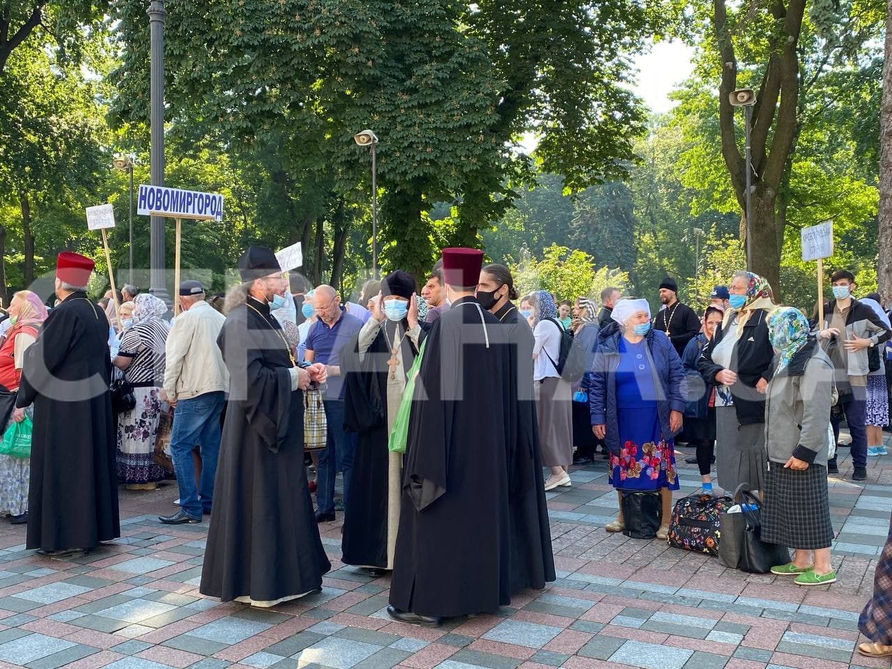 Они собирались вручить Офису президента обращение с требованием отменить закон, обязывающий переименовать УПЦ. Перед этим верующие провели молебен на Владимирской горке в Киеве.