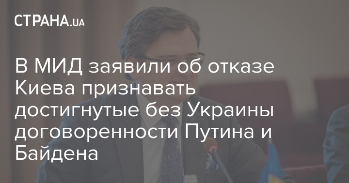 Украина не станет признавать договоренности между президентами России и США Владимиром Путиным и Джо Байденом, которые касаются ее, но будут достигнуты без ее участия.