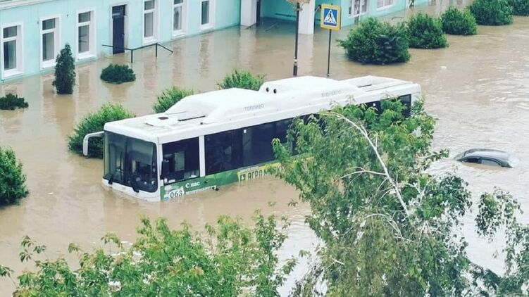 В районе города Керчь, который находится в аннексированном Крыму, за ночь выпало полторы нормы месячных осадков. Из-за этого дороги и тротуары затопило водой, машины буквально плавали в ней.
