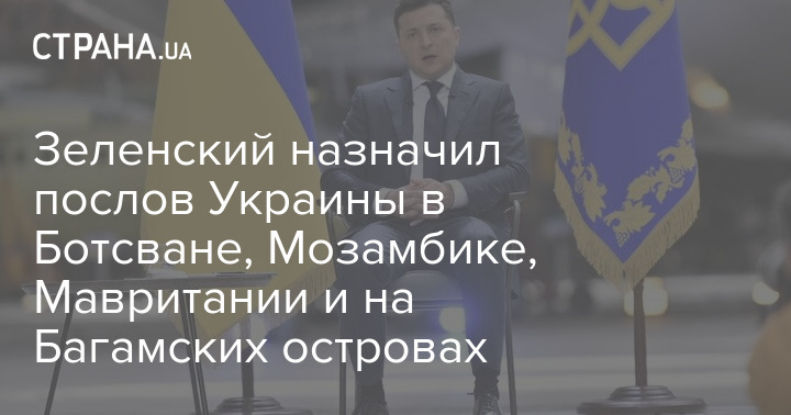 Президент Украины Владимир Зеленский назначил послов Украины в Республике Ботсвана, Республике Мозамбик, Исламской Республике Мавритания, Республике Тринидад и Тобаго и Содружестве Багамских островов. Указы о назначении опубликованы на сайте главы государства.
