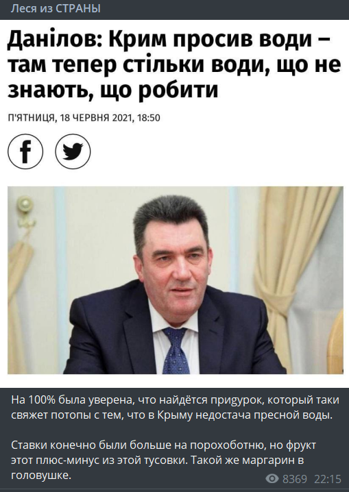 Издеваться над проблемами с водой в Крыму, когда Украина ее же и перекрыла, да еще и на фоне погодной катастрофы – это вряд ли уровень госчиновника. Даже с поправкой на то, что это сказал Алексей Данилов – автор многих спорных высказываний.