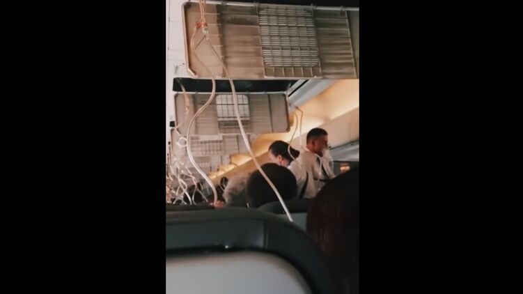 Из ролика понятно, что всех пассажиров стюардессы попросили надеть кислородные маски.