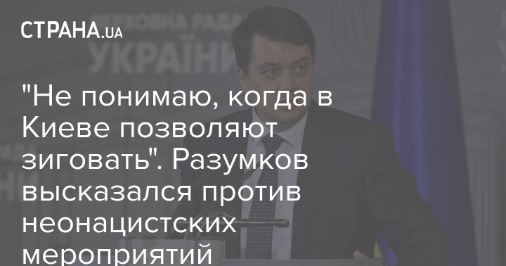 Спикер парламента Дмитрий Разумков заявил, что не поддерживает неонацистские мероприятия и организация. Также он не понимает, как в Киеве кому-либо могут позволять зиговать 9 мая.