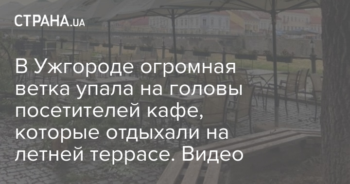В Ужгороде огромная ветка упала на головы посетителей кафе, которые отдыхали на летней террасе. Видео