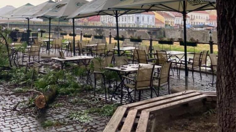 Вечером в четверг, 24 июня, в Ужгороде огромная ветка упала на посетителей одного из кафе, которые сидели на летней площадке.