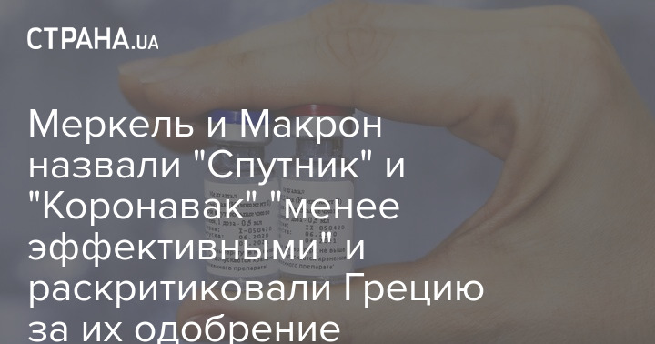 Меркель и Макрон назвали "Спутник" и "Коронавак" "менее эффективными" и раскритиковали Грецию за их одобрение