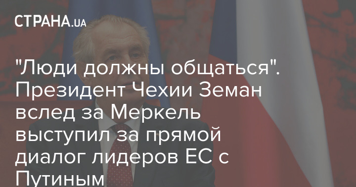 Президент Чехии Милош Земан выразил мнение, что европейским лидерам нужно поддерживать диалог с президентом России Владимиром Путиным. В частности, он заявил, что было бы хорошо, если бы Чехия и РФ снова начали коммуницировать.