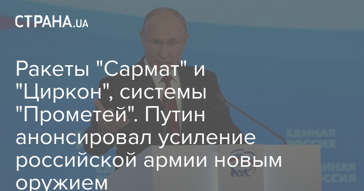 "Уже поставлено на боевое дежурство гиперзвуковое оружие - комплексы "Авангард" и "Кинжал". На подходе другие уникальные системы вооружений, среди них - межконтинентальная баллистическая ракета "Сармат", корабельная гиперзвуковая ракета "Циркон", зенитные системы С-500 "Прометей" и другие комплексы", - сказал Путин.