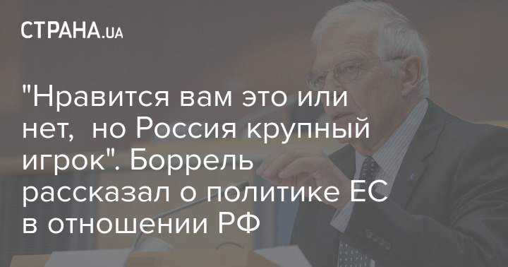 "Россия при президенте Путине дистанцировалась от Европы путем сознательного выбора политики как дома, так и за рубежом. Мы хотели бы, чтобы этот выбор был другим, но мы должны исходить из этой реальности и возможности того, что отношения между ЕС и Россией могут даже ухудшиться. В то же время мы живем на одном континенте с Россией, и она остается жизненно важным игроком на многих фронтах. Поэтому у нас нет альтернативы, кроме как выработать принципиальный, сбалансированный и стратегический подход", - констатировал Боррель.