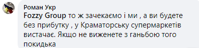 Армия "ботов" продолжала строчить гневные комментарии на странице Fozzy Group, пугая тем, что откажутся от услуг "Сильпо" в пользу "Таврии" или "Ашана", оставят их магазины без прибыли, если те с позором не прогонят подонка".