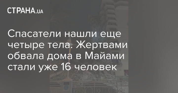 Власти муниципалитета Сарфсайд в американском штате Флорида сообщили, что спасатели нашли еще четыре тела жертв частичного обрушения 12-этажного жилого дома, которое произошло 24 июня