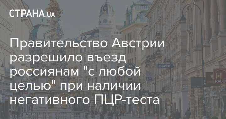 Власти Австрии заявили о готовности принимать россиян "с любой целью" при подтверждении низкого эпидемиологического риска.