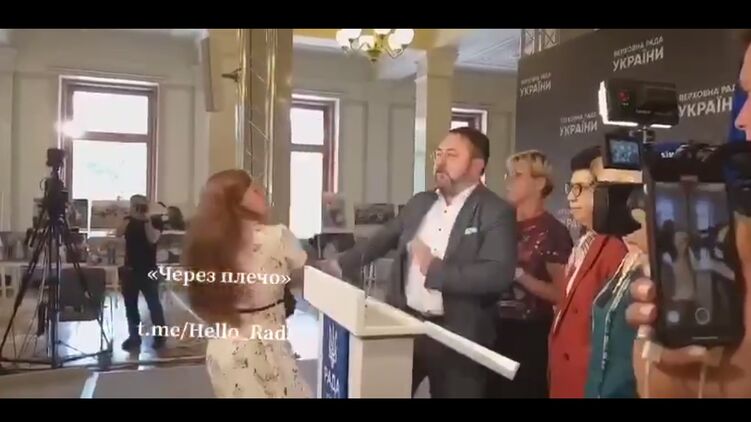 "Мы вышли с коллегами на брифинг, как раз говорили о демократии. Тут походит эта барышня к Никите Потураеву, спрашивает его: "Вы депутат "Слуги народа"? – Да. И эта женщина бьет его по лицу. Мы вообще не поняли, что случилось. А эта барышня начала возмущаться и предъявлять претензии по поводу того, что открыли рынок земли. Мол, хочу вам высказать свое мнение. Мы спрашиваем, мол, кто вы, и что вообще происходит? И тут она достает удостоверение и представляется: "Я Ирма Крат, аккредитованный журналист". Мы все были в недоумении", – рассказала "Стране" Цыба.