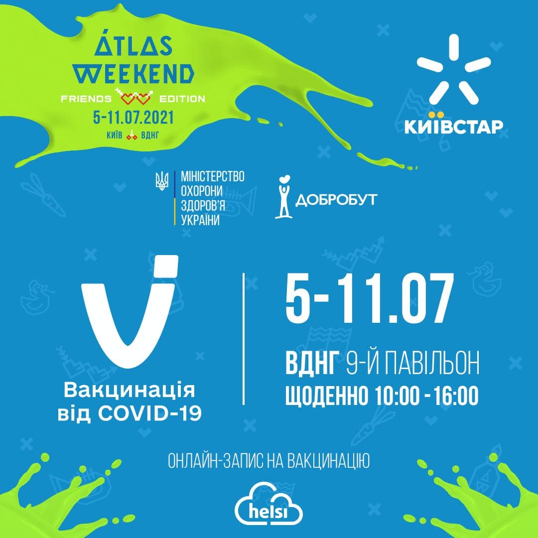С 5 по 11 июля украинцы смогут вакцинироваться от Covid-19 на территории музыкального фестиваля Atlas Weekend.