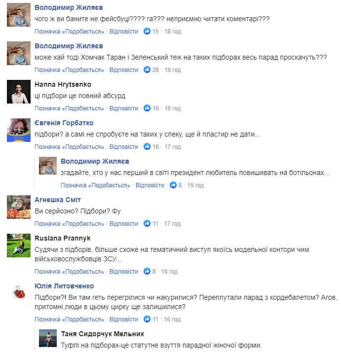 Маршировка на каблуках явно не имеет отношения к военному делу. Поэтому в комментариях к публикации Минобороны некоторые украинцы начали осуждающе комментировать формат марша.