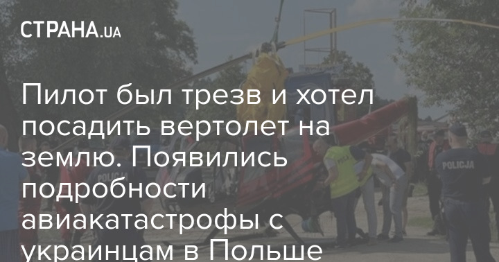 Польские правоохранители выяснили, что гражданин Украины, который управлял рухнувшим в озеро Талты вертолетом, был трезв. При этом он пытался посадить летательный аппарат на поверхность земли, однако в результате все закончилось погружением машины с еще двумя украинцами на борту под воду.