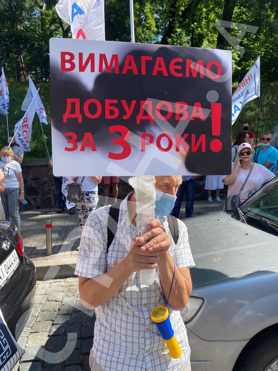 "Третий год замороженное строительство. Для полномасштабного и непрерывного обновления и завершения строительства всех домов в срок до трех лет нужно покрыть дефицит бюджета в размере 3.6 миллиарда гривен. Власть обещала нам диалог но его так и не было",- заявляют участники протеста