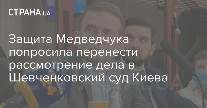 Во время заседания о продлении меры пресечения Виктору Медведчуку, сторона защиты заявила ходатайство про объявление перерыва, так как хочет перенести рассмотрение уголовного дела в отношении Медведчука с Печерского суда в Шевченковский суд Киева.