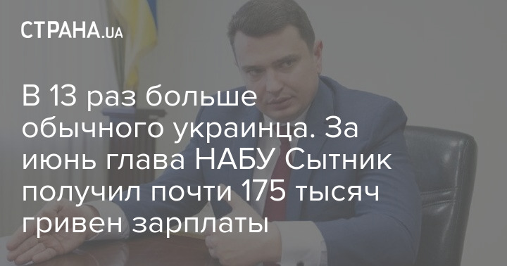 Пока средняя зарплата в Украине падает второй месяц подряд, директор Национального антикоррупционного бюро (НАБУ) Артем Сытник за июнь получил 215 тысяч гривен.