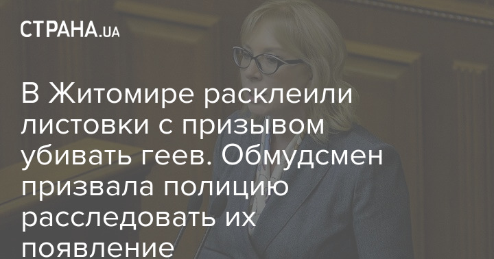 На улицах Житомира неизвестные расклеили гомофобные листовки. Уполномоченная Верховной Рады по правам человека Людмила Денисова призвала Нацполицию отреагировать на их появление.