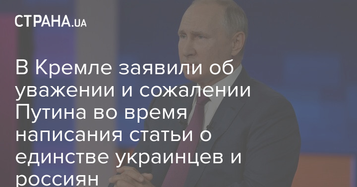 Статья президента России Владимира Путина о единстве россиян и украинцев, опубликованная на сайте Кремля на русском и украинском языках, написана в духе уважения к украинскому народу, но с сожалением, что страна отдана на откуп Западу. Такое заявление сделал спикер Кремля Дмитрий Песков.