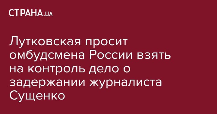 Уполномоченный по правам человека Верховной Рады Валерия Лутковская направила письмо омбудсмену России Татьяне Москальковой с просьбой взять под контроль дело украинского журналиста Романа Сущенко. Об этом сообщает телеканал "112 Украина".