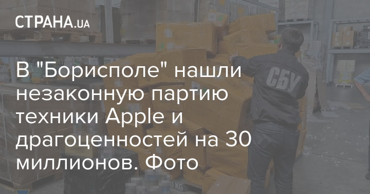 Служба безопасности Украины раскрыла два международных канала контрабанды цифровой техники Apple и драгоценностей от известных брендов. Преступники пытались провезти через международный аэропорт "Борисполь" товар на сумму более 30 млн гривен.