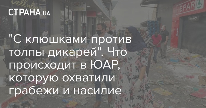 "Добровольцы вооружаются кто чем может - муж подруги ходит на дежурства с клюшками от хоккея. У южно-африканцев есть одна важная черта: как только случается что-то серьёзное, они встают все вместе против зла, засухи, наводнения, пожара, голода. Теперь вот против безумной толпы хулиганов и мародеров. Началось всё с протестов после ареста бывшего президента  Зумы. Против него выдвинуто более 700 обвинений. Он страну разворовал так, что дальше некуда. Народ в нищете, но кто-то его ещё защищает. Потом начались погромы -это  обычное для местных протестующих занятие. А раз погромы, то без разницы уже за кого или против кого кипишь поднимать. И понеслось. К протестующим и просто хулиганам примкнули любители поживиться чужим добром. Оправдываясь локдауном и голодом, народ начал тащить телевизоры, стиральные машины, покрышки и бухло ящиками. Но, несмотря на то, что толпа этих дикарей огромная, это не большинство. Это отбросы общества, а не его часть. Большинство встало вместе, чтобы защитить порядок в стране. Раз это не сделало правительство. Рыба гниёт с головы. И происходящее как раз результат гнили, которая идёт сверху уже много лет. Ходят разговоры, что этот хаос кем-то организован, что это не просто стихийная толпа, которая ради наживы атакует магазины", - рассказывает "Стране" живущая в ЮАР Светлана Остин.
