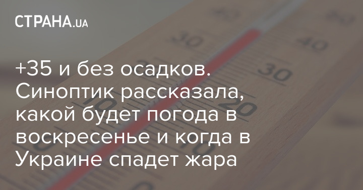 В воскресенье, 18 июля, в Украине ожидается жаркая погода. Температура воздуха в течение дня составит +30...+35 градусов. Немного прохладнее будет на западе страны - +28...+32.