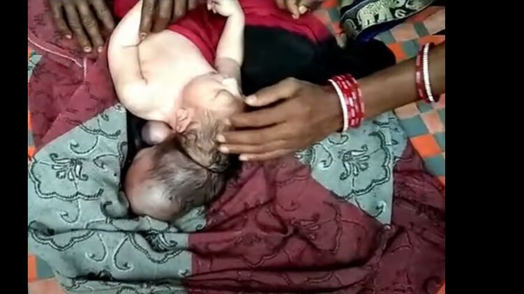 В индийском штате Уттар-Прадеш 12 июля родился необычный младенец - у ребенка три головы. Малыша сочли воплощением бога и начали паломничества в дом семьи.