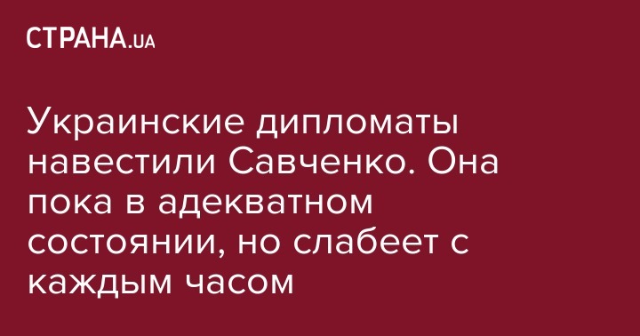 Украинские дипломаты навестили Савченко. Она пока в адекватном состоянии, но слабеет с каждым часом
