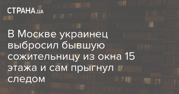 Вечером в воскресенье, 18 июля, в Москве 40-летний украинец сбросил из окна 15-го этажа жилого дома бывшую девушку и сам прыгнул следом.