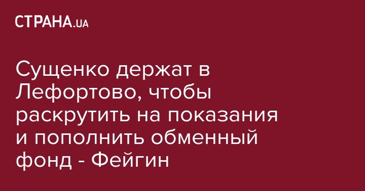 Фейгин заявил, что Сущенко пересек границу России законно и не исключает, что российские спецслужбы проводят спецоперацию для пополнения так называемого обменного фонда. "Это все по сумме мне напоминает фейковую историю с диверсантами в Крыму", - сказал Фейгин.