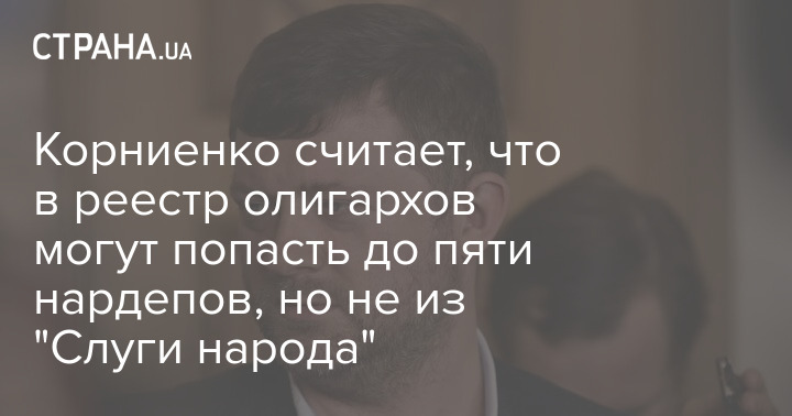Глава партии "Слуга народа" Александр Корниенко заявил, что после принятия Верховной Радой законопроекта президента Владимира Зеленкского об олигархах к числу таких лиц могут отнести до пяти народных депутатов, при этом их имена он не назвал.
