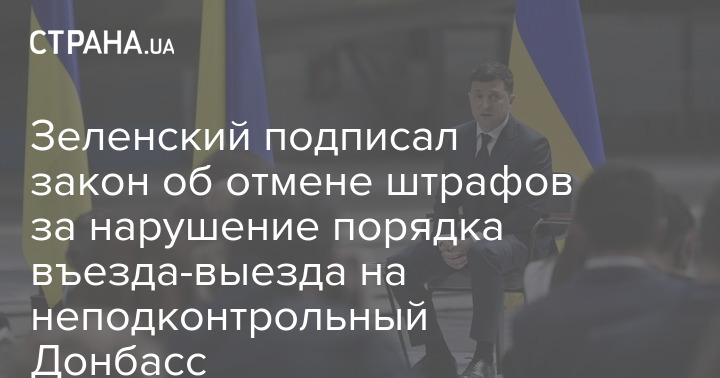 Президент Украины Владимир Зеленский подписал закон, который освобождает граждан Украины, проживающих на неподконтрольных территориях, от административной ответственности за нарушение порядка въезда-выезда из неподконтрольных районов Донбасса, если такие нарушения наступили по причинам гуманитарного характера.