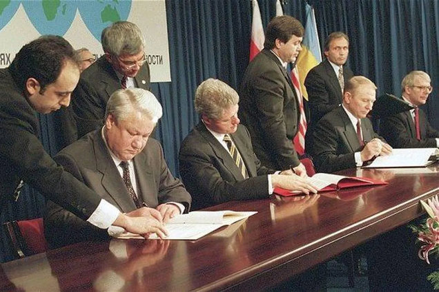 Это, пожалуй, главное событие 1994 года. Переговоры начались годом ранее — еще в 1993-м Украина подписала с Россией Массандровские соглашения о передаче в РФ на утилизацию ядерных боеголовок. Параллельно с Украиной вели переговоры США.