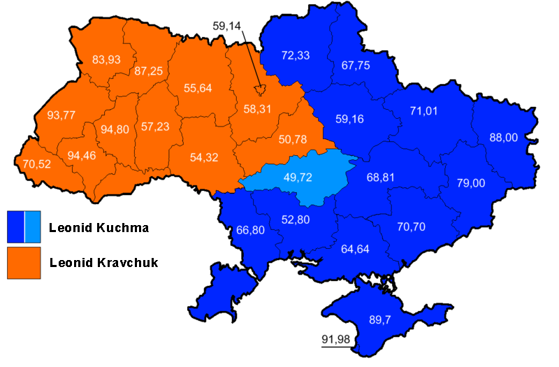 На этих выборах впервые был четко зафиксирован электоральный раскол Украины. На Юго-Восток (голосовавший за Кучму) и Запад, который голосовал за Кравчука. Правда, граница между ними тогда проходила значительно западнее, чем 10 лет спустя на выборах президента 2004 года.