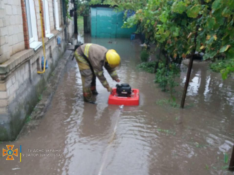 "22 июля в Бердянске в результате интенсивных осадков погибло 2 человека (обрыв электропроводов на подтопленном участке) и произошло подтопление 70 домохозяйств. Подразделениями ГСЧС оказана помощь 32 лицам, из них 10 детей (выведено из подтопленных участков). Откачано около 740 куб. м воды. Работы продолжаются", – говорится в сообщении ГСЧС