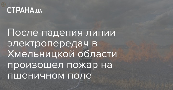 После падения линии электропередач в Хмельницкой области произошел пожар на пшеничном поле