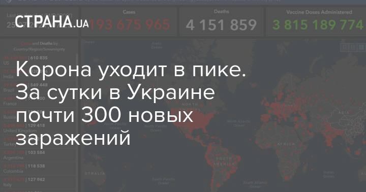 Корона уходит в пике. За сутки в Украине почти 300 новых заражений