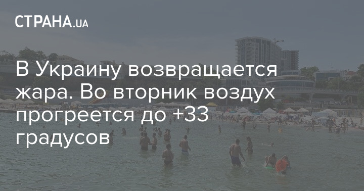В Украину возвращается жара. Во вторник, 27 июля, воздух местами прогреется до +33 градусов. Кратковременные дожди с грозами возможны в западных регионах, а также Винницкой и Житомирской областях.