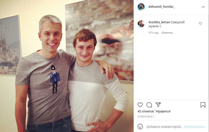 Спортсмен сфотографировался с известным телеведущим Андреем Доманским и известным юмористом из дуэта "Кролики" Владимиром Моисеенко.